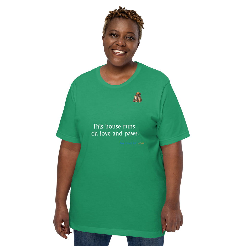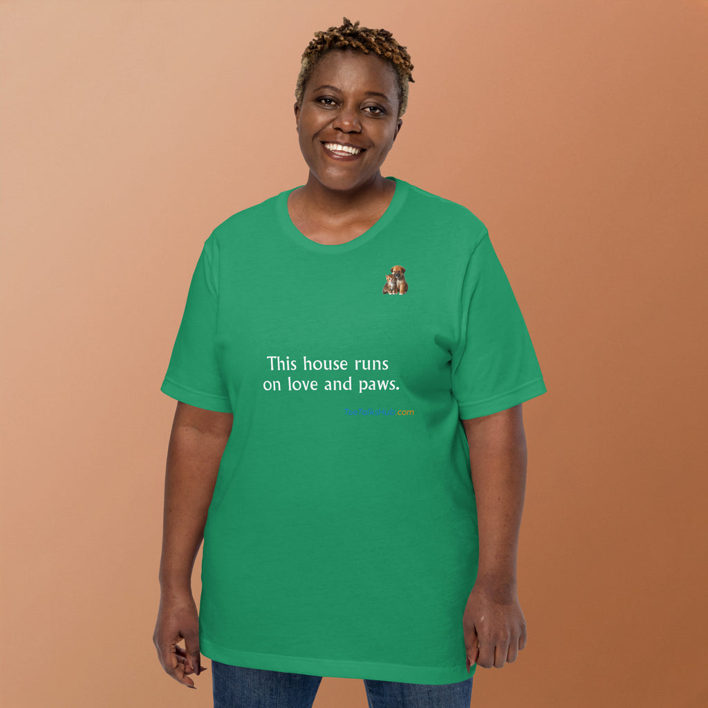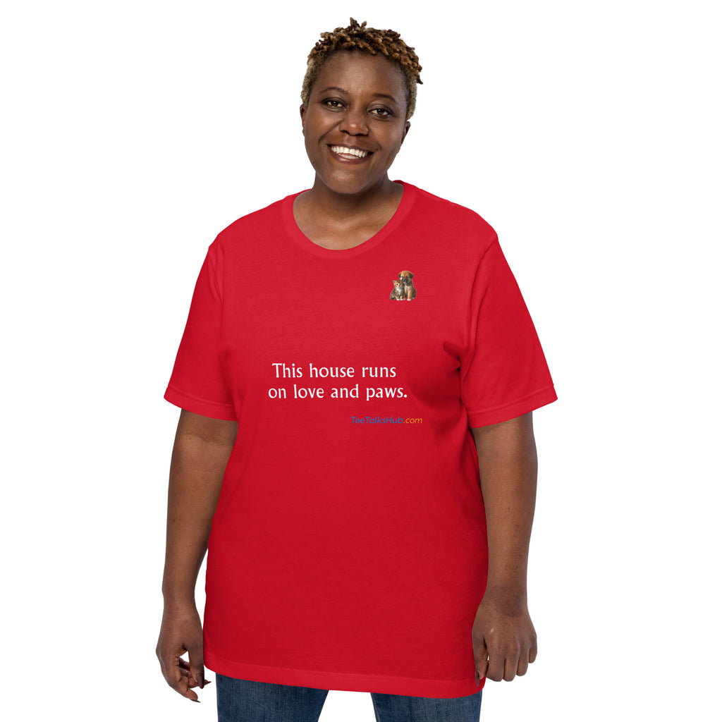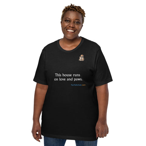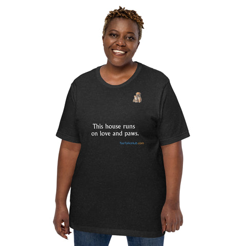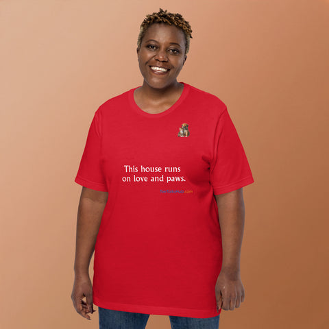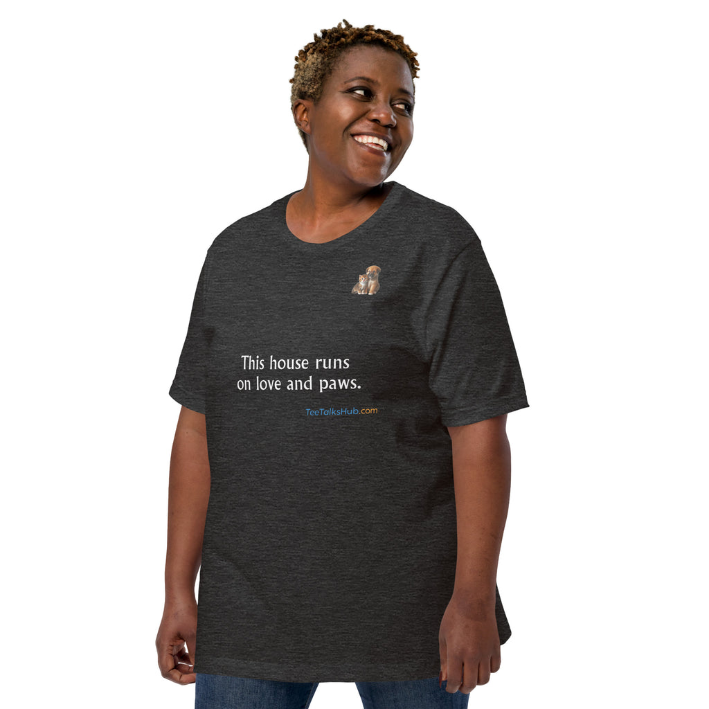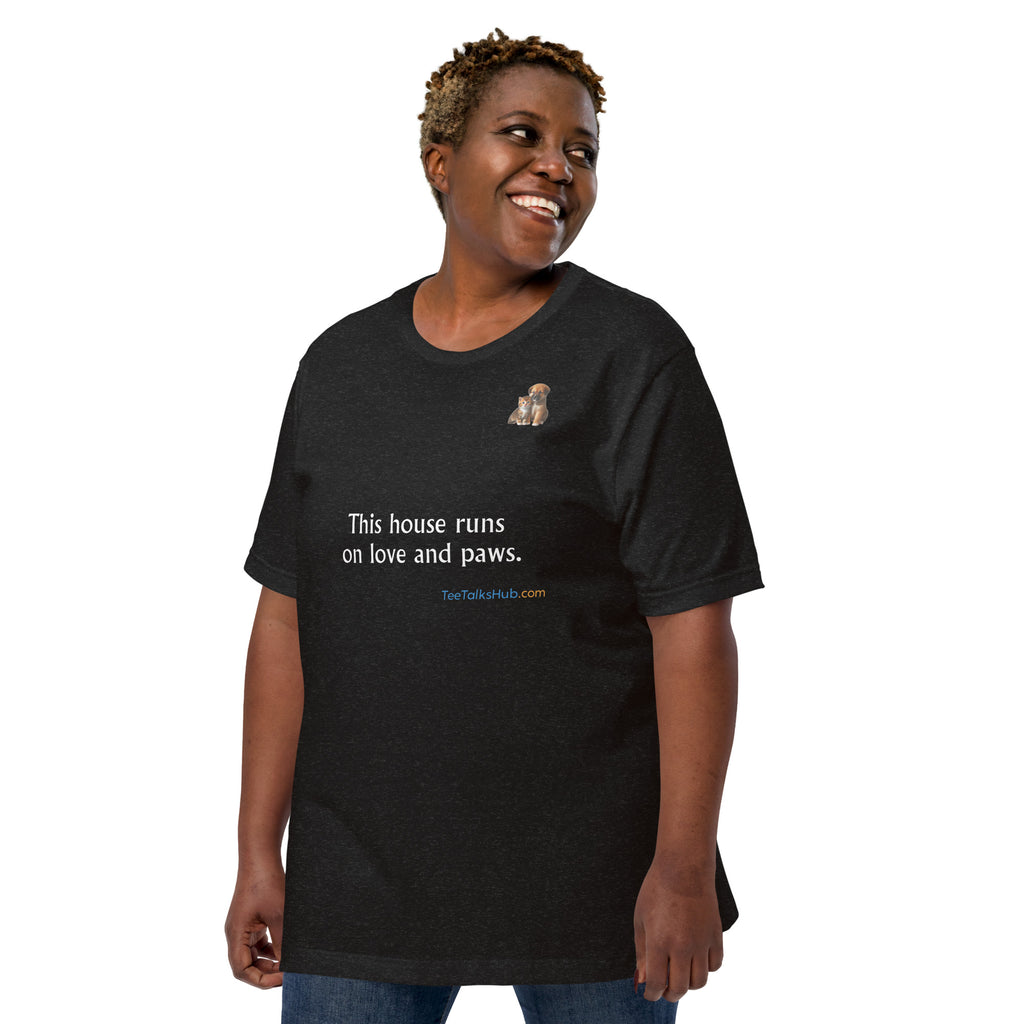 Unisex t-shirt dark colors - This house runs on love and paws.